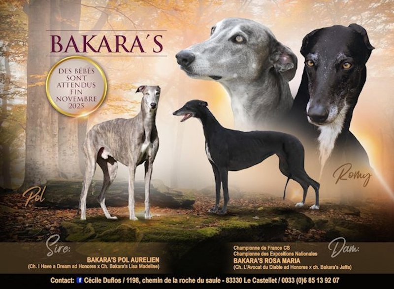 générations consécutives de Greyhounds BAKARA'S (de droite à